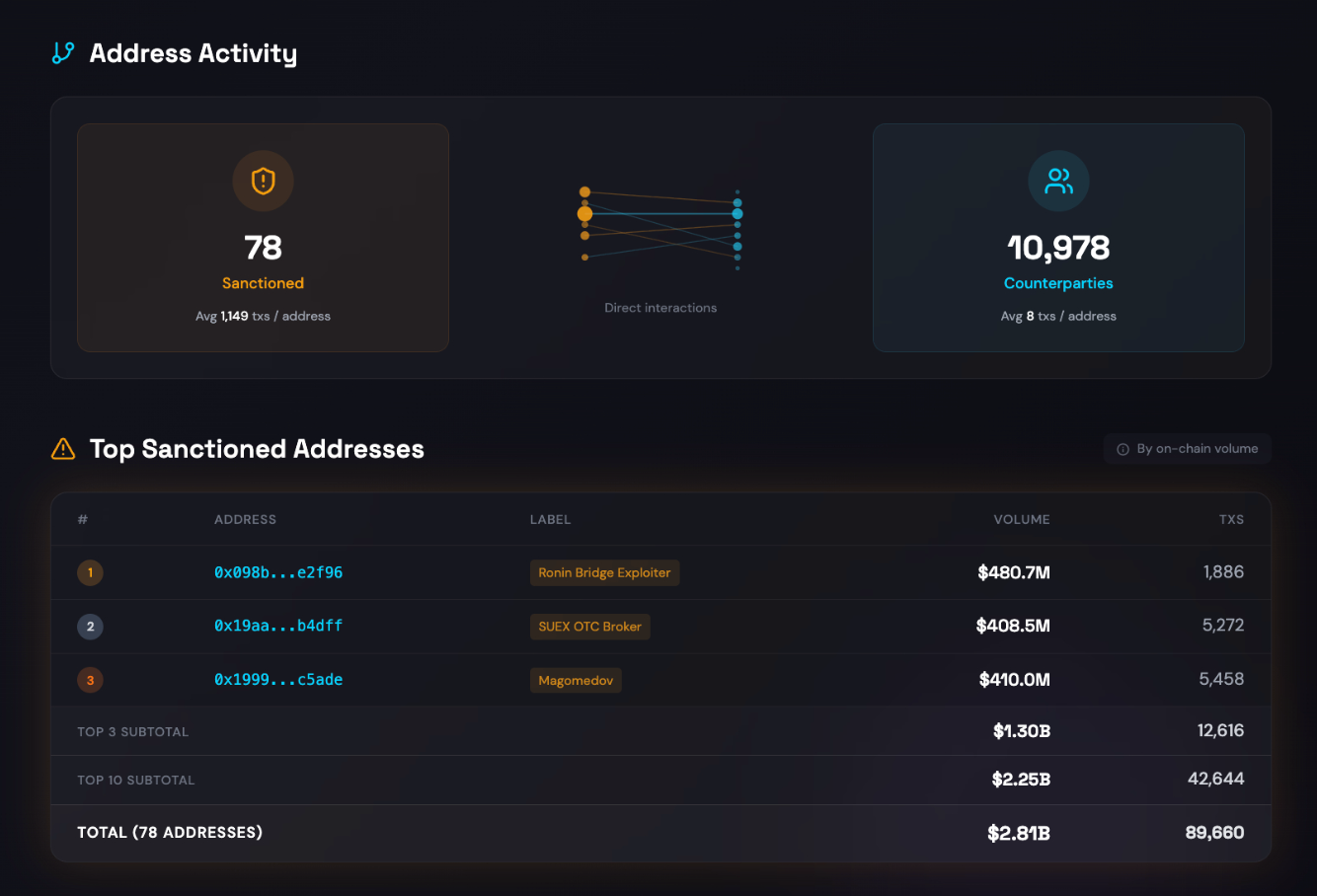 Sanctions compliance on-chain isn’t hypothetical. Over the last decade, addresses tied to major sanctions designations have transacted at meaningful scale and touched thousands of counterparties across the ecosystem.